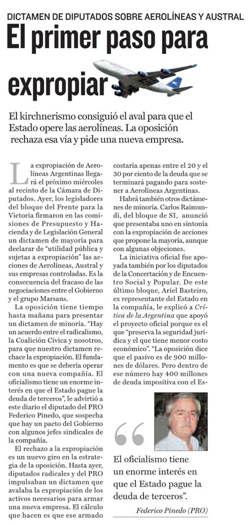 DICTAMEN DE DIPUTADOS SOBRE AEROLÍNEAS