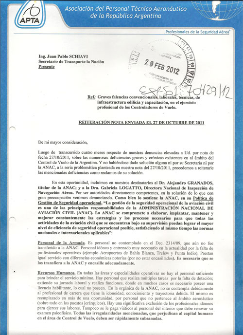 APTA, convoca a todos los compañeros Técnicos Aeronáuticos, Despachantes de Aeronaves y Controladores de Tránsito Aéreo de la Argentina a participar masivamente de dicho reclamo público al gobierno nacional.